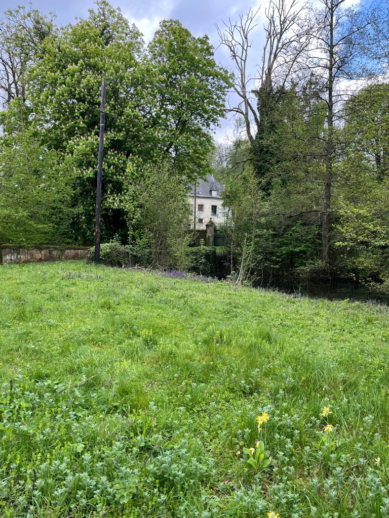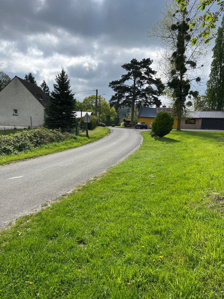 For me St Nicolas heralded my entire into the woodland, which would be the principal feature of the remainder of the day’s walk. I thought of those back home at Sutton St Nicholas and my forthcoming chat with Keith for the Sutton Voices podcast. Such musings didn’t last long however, as there ensued a sustained climb out of the village and, through several hairpins, the top on the D7 St Gobain to Laon road. On the way up, was the former Abbaye de Saint-Nicolas, with its ponds and quiet beauty. Taking this photograph permitted a short breather!