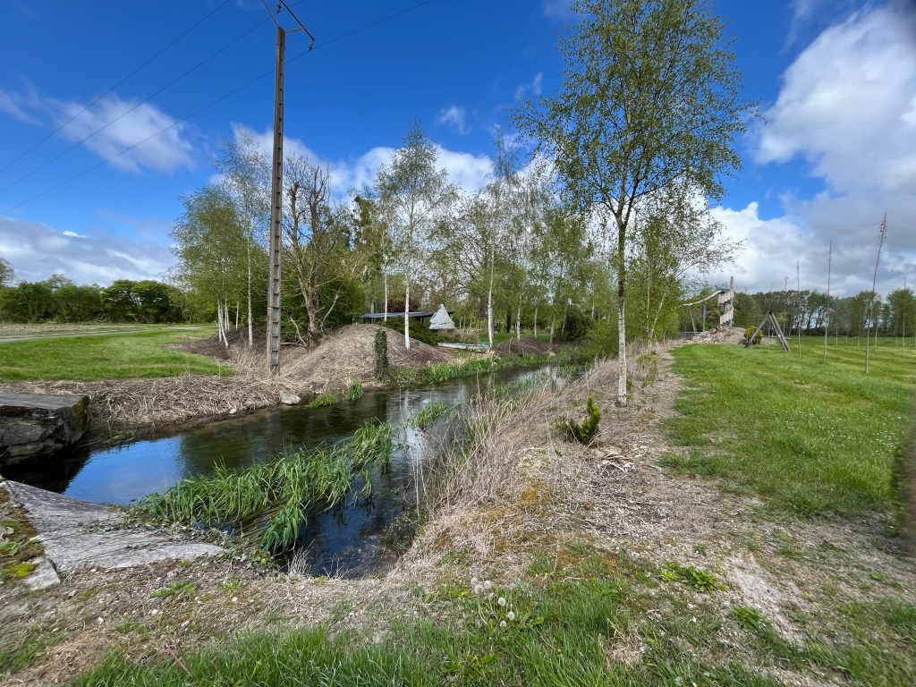 Beyond the village, I skirted some woodland, came across this fun looking water set up by a river and then passed the Bosch auto test facility. For a moment I chuckled, imagining Bosch washing machines racing around a test track, before crossing the D925 and walking into Berry-au-Bac.