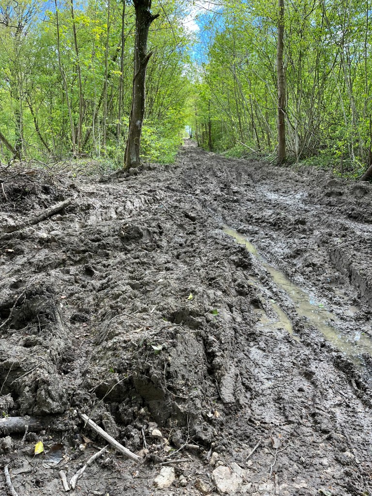 It looked like they were having a lot of fun, and a little further on I realised they were much better equipped to exit the woodland than me. I came across the most expansive portion of muddy track yet encountered.