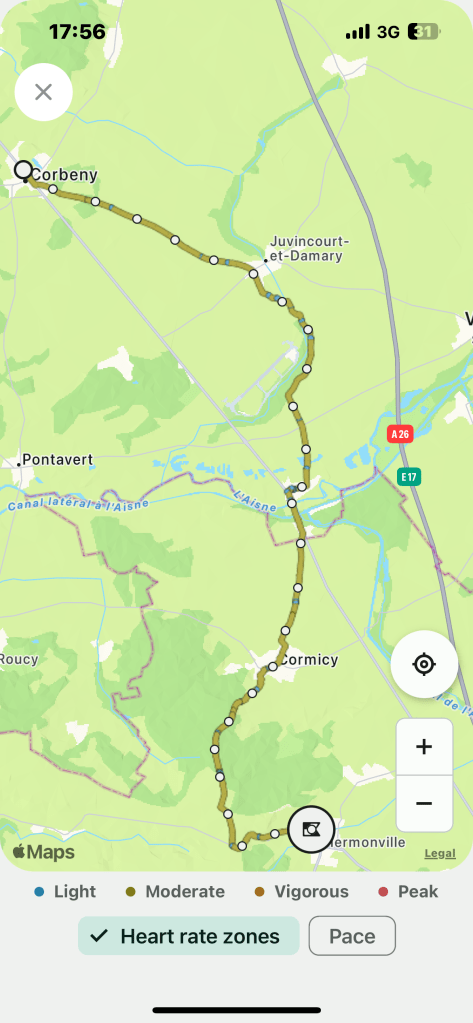 Happily todays walk was to be shorter than yesterdays, at only around 25km. I struck out on the quiet road to Juvincourt-et-Damary and tuned in to BBC Radio 4’s Sunday morning output. Sunday worship came from HMP Wandsworth and I found this service particularly moving. If this is your sort of thing, I thoroughly recommend listening to it on BBC Sounds. It enabled me, for a second week in a row, to sing “Thine Be The Glory” as loud as I wanted, this time accompanied by the Soul Sanctuary Gospel Choir. Hearing testimony by the prisoners as to how important their faith was, how valued the chaplaincy team were and the deep trust and hope they had in God, was inspirational. A Pentecostal Free Church chaplain preached movingly on a passage of Romans 8: “…nothing can separate us from the love of God.” And I reflected on times in my life when I have felt at my lowest, and how the love of God felt closest at these times. Following the sermon, the choir sang Amazing Grace and I wept a little.