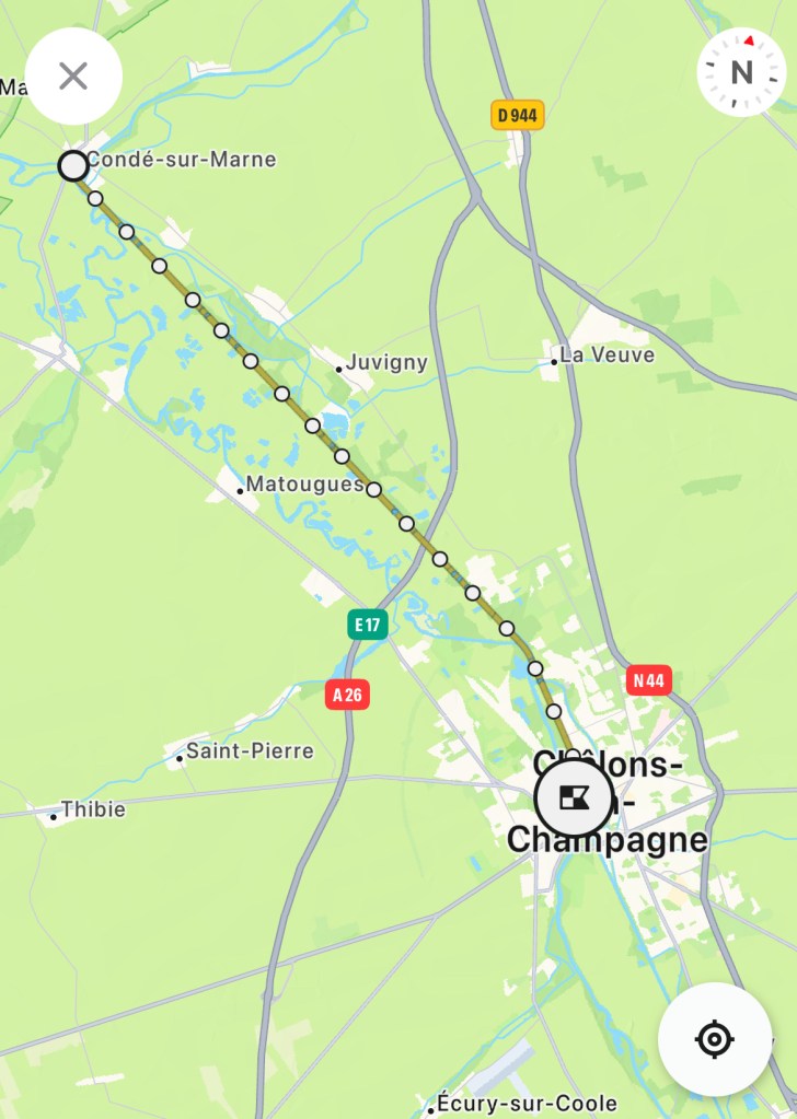 My walk today would be of similar duration to the journey along the Trans-Canadian Highway 1, and would contain not many more features. My constant companion on these 17 kilometres would be the Canal Latéral à la Marne, into which the previous day’s canal (the Canal de l’Aisne à la Marne) flows at Condé. Confused yet? You’ll have plenty of time to work it out.