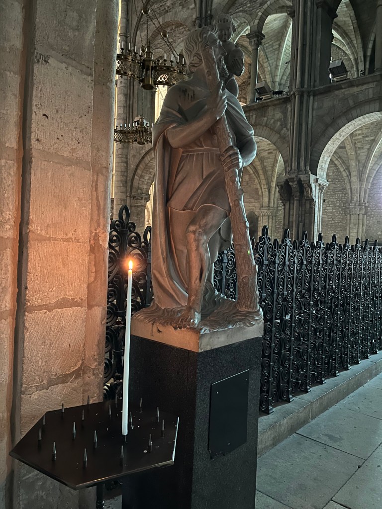 Around the cathedral there are a number of saints and altars where candles were burning. I spotted a figure of St Christopher, with walking staff, bearing the infant Christ on his shoulder. As a pilgrim, this motif appeared to me: I am certainly trying to bear the image of Jesus Christ onto my travels, even if, as Christopher found, this is difficult at times. I offered a candle and prayed for my journey. It was only later I realised how prescient this act was.
