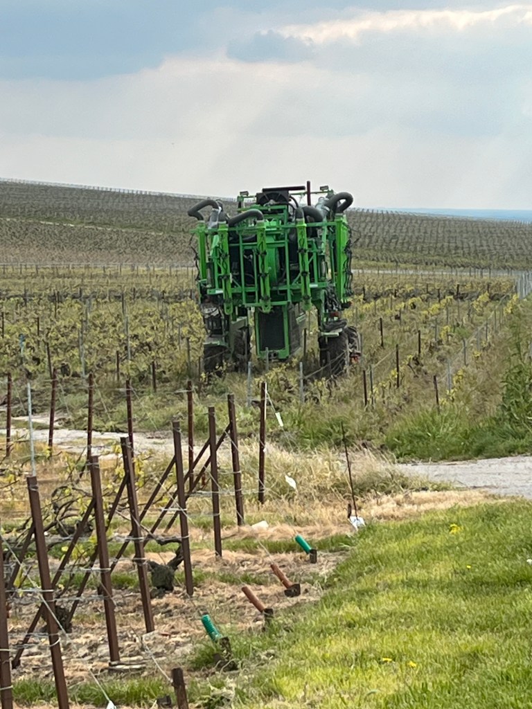 I ate and watched the world go by, a number of vineyard workers, or perhaps viticulturalists as perhaps they prefer to be called were heading back to the fields after lunch. I love the vineyard tractors with their high wheels and space for the vines underneath the working parts of the tractors. Here’s one I spotted later, for all the tractor spotters out there.