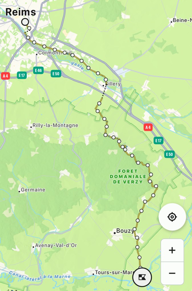 The remainder of the journey was long, and undertaken off the Via along busy departmental through Trépail and Ambonnay. Both packed with different champagne houses, but my tired feet were beginning to slow me down.