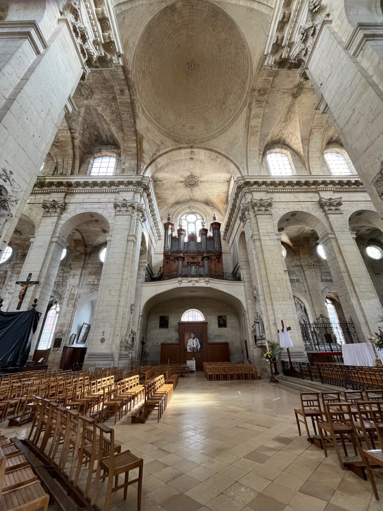 And then to the Collegiate Church of Notre Dame. Once again a huge church, of the 17th Century this time, still bearing the scars of the Second World War, but light and airy inside.