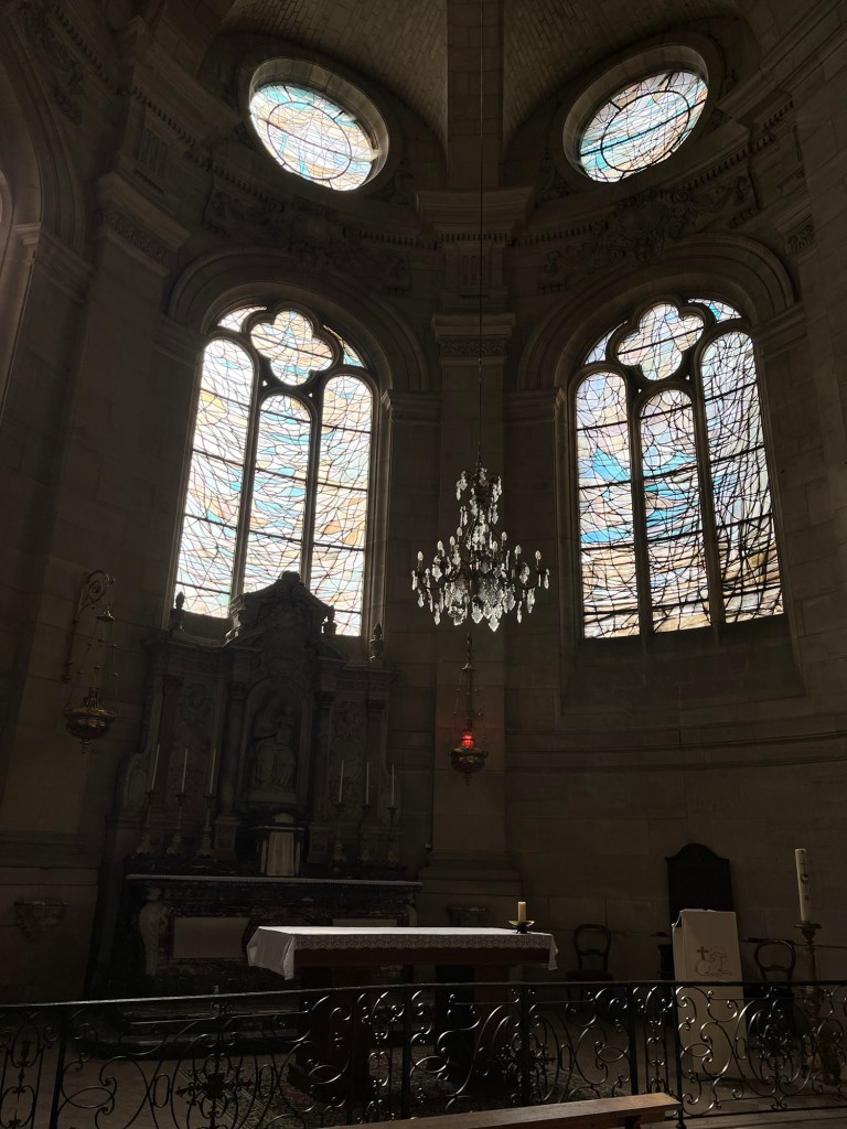With the obvious exception of being in French, the outline of the mass was almost identical to a Common Worship communion. A choir had been assembled, and a number of men sang most heartily – often with a cantor and response. It was a really uplifting service. The gospel was the same passage from John (Ch 15.1-8) and although I struggled to follow the homily, abiding in the love of God seemed to be the main focus again.
