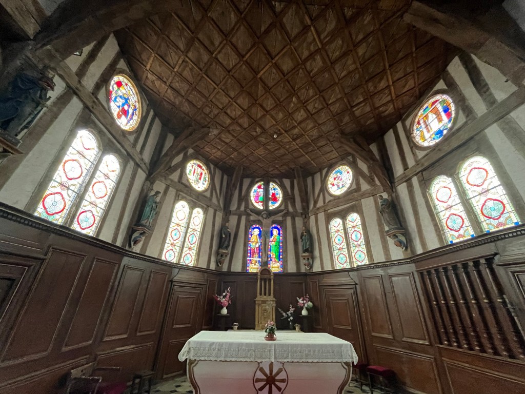 The Church of the Saint Nicholas at Outines is another half-timbered church, and is clearly loved and cared for by its community. Around fifty people gathered for mass – many keeping Herefordshire time, I was pleased to see! On making enquiries afterwards, people drove quite some distance “following the priest” from church to church each Sunday. No dashing around for the clergy here, it seemed that the priest had just one service to take each Sunday morning.