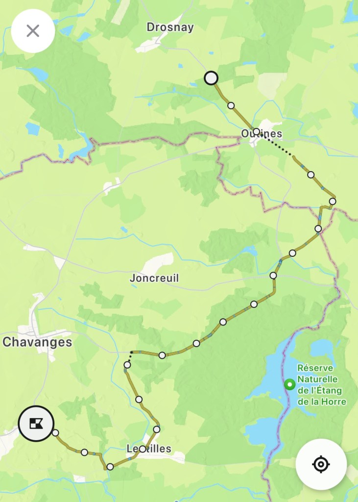 I crossed the railway line just outside Villeret and then spotted a British car approaching. Jocular greetings were exchanged and I got into the car. It was frankly an odd feeling, to be travelling at a speed in excess of 5km an hour. I hadn’t travelled this fast since the ferry crossing over three weeks ago!