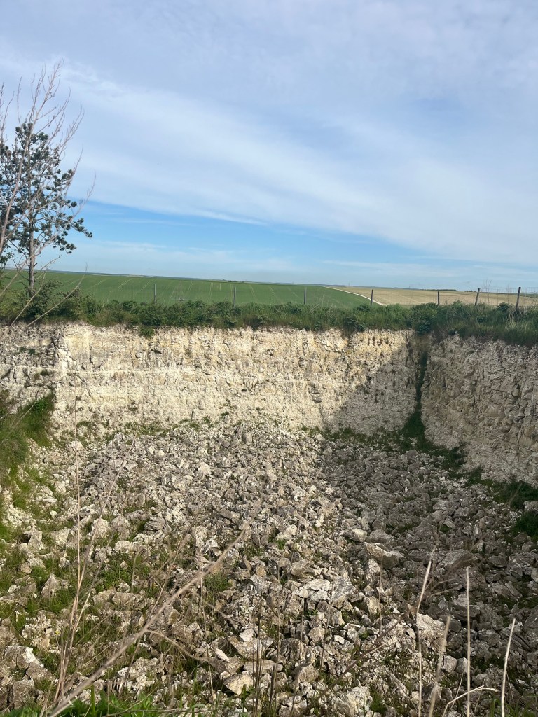 I was pleased to see an old, small quarry cut into the rising ground showing how near beneath the surface the chalk is.